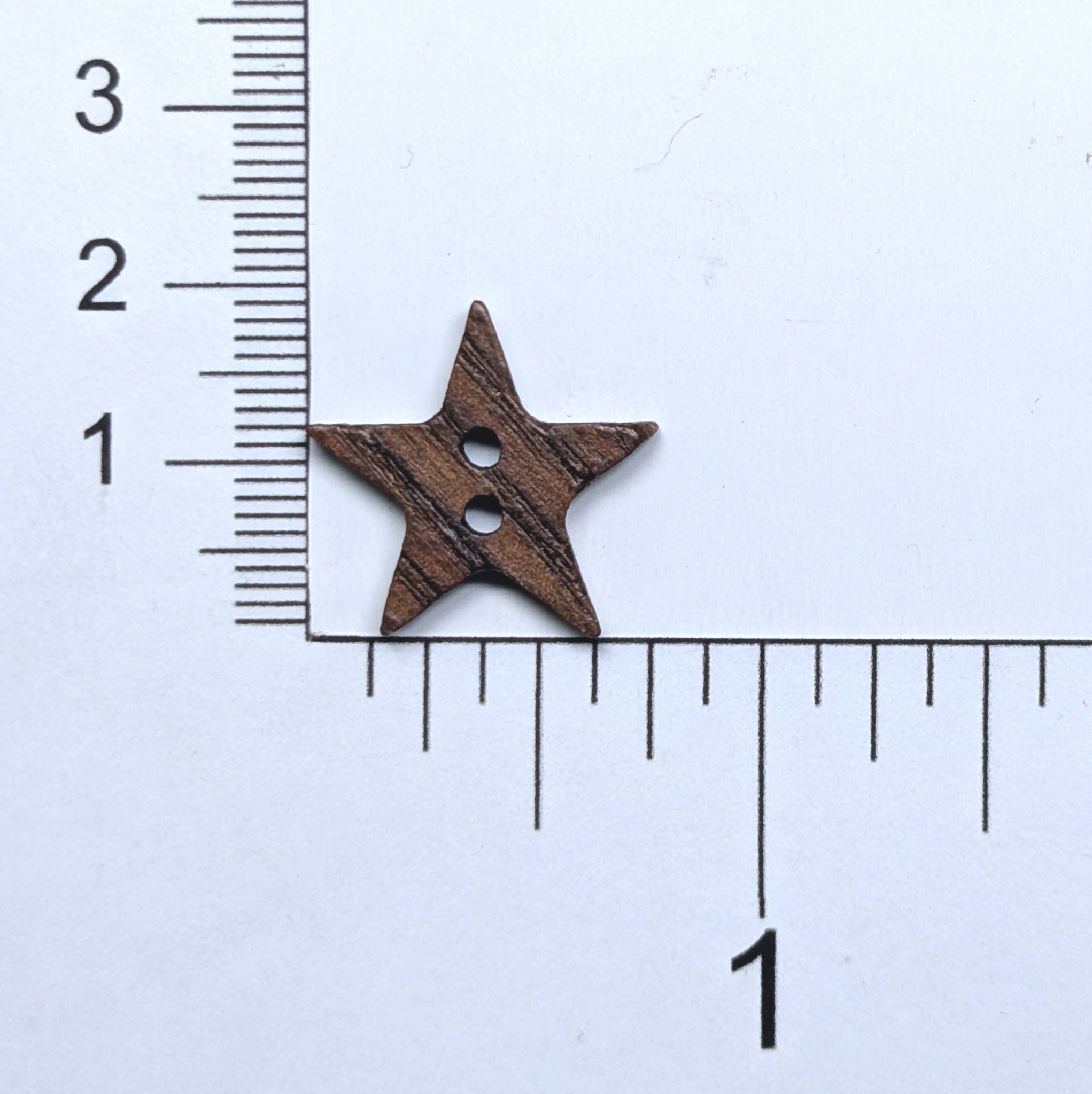 Description: Brown multi-tone wood-grain star button